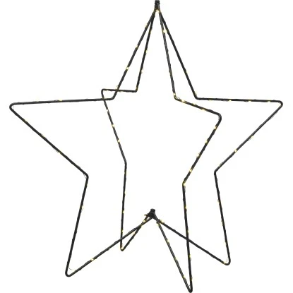 Mit dem beleuchteten 3D-Stern lässt sich ein interessanter Effekt für den Garten oder den Hauseingang erzielen. Er besteht aus einer Silhouette in zwei Ebenen, die von Weitem einen Raumeindruck bietet. Die Maße betragen 58,5 cm x 59,5 cm x 59,5 cm (H x B x T). Er ist aus stabilem Eisen hergestellt und eignet sich für den Innen- & Außenbereich, wo er überall aufgestellt werden kann. Als Leuchtmittel dienen umweltfreundliche und moderne LED-Leuchten. Der Betrieb erfolgt mit drei separat erhältlichen AA-Batterien. Als Beleuchtung dienen 90 fest integrierte LEDs in der Lichtfarbe Warmweiß. Mit einem Timer lässt sich die Einschaltzeit vorwählen und die Lichterkette ein- oder ausschalten.