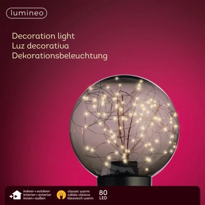 Die Dekoleuchte Kugel mit LED-Beleuchtung ist ein schöner Blickfang in der Winter- und Weihnachtszeit. Sie ist für den Innen- und Außenbereich geeignet und mit 80 warmweißen LEDs ausgestattet.
