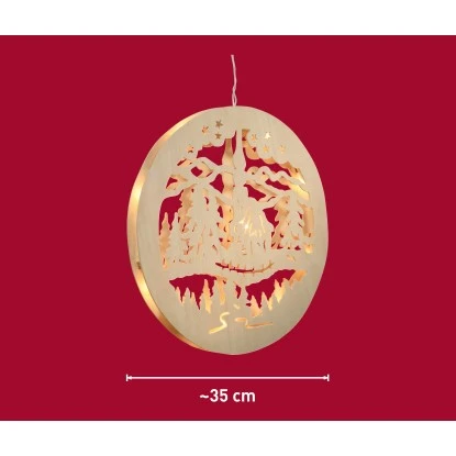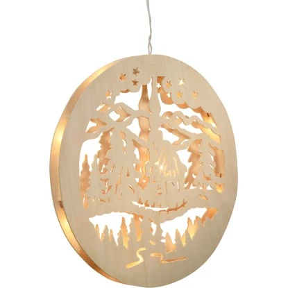 Leuchtende Winterdekoration für Ihr Zuhause. Der aus Holz gefertigte Fensterhänger Wald bietet Ihnen in der kalten und dunklen Jahreszeit eine besondere Art der Fensterbeleuchtung. 10 klar scheinende Lichter sorgen für ein angenehmes Licht und lassen Ihr Zuhause in einem wunderschönen winterlichem Glanz erstrahlen. Nur zur Verwendung im Innenraum geeignet. Die Zuleitung beträgt 1,5 m und ist weiß.