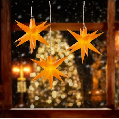 Diese LED-Sternenhänger sind eine zauberhafte Dekoration zur Weihnachtszeit. Die Sterne haben 14 Zacken. Ob im Fenster als Beleuchtung oder am Weihnachtsbaum, auf Balkon oder Terrasse diese LED-Sternhänger ist vielseitig einsetzbar. Ausgestattet mit einer transparenten Zuleitung von 5m und einem Durchmesser von 12 cm. Nach IP44 Standard für den Außenbereich zugelassen. Die Handhabung ist einfach gehalten.