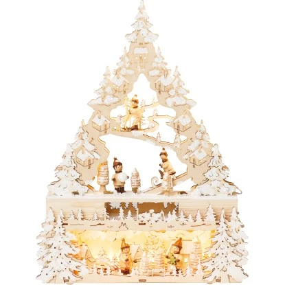 Genießen Sie die schönste Zeit des Jahres und lassen Sie sich vom besonderen Flair dieses Produktes verzaubern. Die Lichterspitze mit beleuchtetem Sockel ist komplett aus Holz gefertigt und mit insgesamt 20 sparsamen LED’s beleuchtet. Für Batterie- und Netzbetrieb.