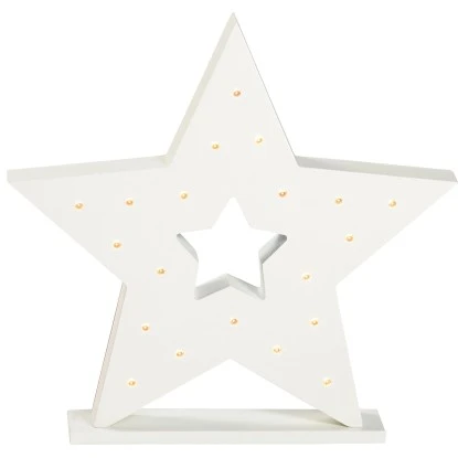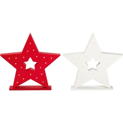 Sowohl beleuchtet als auch unbeleuchtet sieht der Stern aus Holz gut aus. Die 20 verbauten warmweißen LEDs sind Batteriebetrieben. Das Batteriefach ist fest verbaut, so dass kein Kabel den Anblick stört. Dieser Beleuchtungsartikel ist nur zur Verwendung in Innenräumen geeignet. Es werden 2 x AAA Batterien benötigt, welche nicht im Lieferumfang enthalten sind. Der Stern ist in den Farben Rot und Weiß erhältlich.