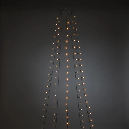 So unkompliziert und präzise haben Sie Ihren Weihnachtsbaum noch nie in Schale geworfen. Der LED Baummantel lässt Ihren Baum mit 200 bernsteinfarbenen Dioden in weihnachtlichem Glanz erstrahlen. Legen Sie im ersten Schritt den Ring über die Baumspitze und verteilen Sie anschließend die 5 Stränge mit je 40 Dioden dekorativ in den Zweigen. So sind alle Lichter ohne großen Aufwand auf Anhieb gleichmäßig verteilt. Jetzt nur noch einstecken und sich an dem warmen, festlichen Lichtermeer erfreuen. Auf eine ausreichende Länge der Zuleitungen legt Konstsmide traditionell großen Wert. Mit 5 Metern ist sie auch bei diesem LED Baummantel großzügig bemessen ein Qualitätsmerkmal, dass Ihnen den Einsatz zusätzlicher Verlängerungskabel erspart. Ein hochwertiges und langlebiges Markenprodukt, das Ihnen und Gästen viele Jahre Freude schenken wird. Die Firma Konstsmide ist seit über 40 Jahren auf die Herstellung hochwertiger Lichtdekorationen für den Innen und Außenbereich spezialisiert und seit 1999 maßgeblicher Impulsgeber für innovative, langlebige und sichere LED Lösungen.