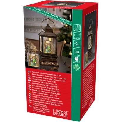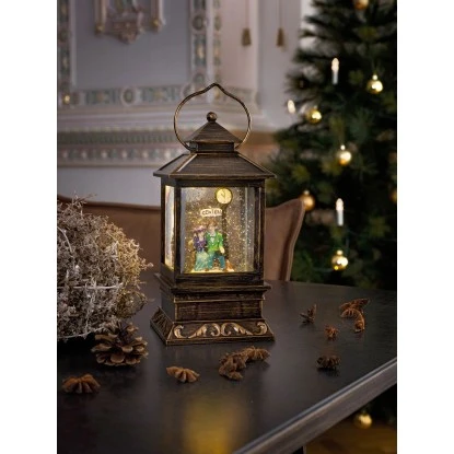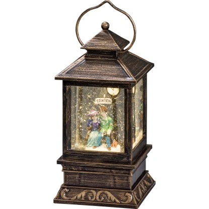 Die LED Schneelaterne mit Pärchen schafft eine romantische Atmopshäre von britischem Schneetreiben. Die kleine Laterne ist mit Wasser gefüllt und leuchtet warmweiß.