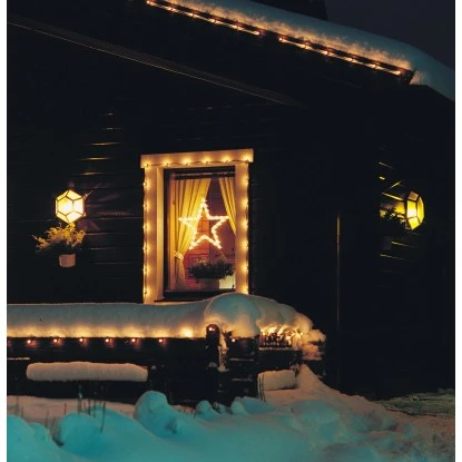 Die LED Fenstersilhouette in Form eines Sterns eignet sich für die winterliche Beleuchtung im Innenbereich. Über Saugnäpfe wird die Silhouette an der Scheibe befestigt und ist so nach Ende der dunklen Jahreszeit auch leicht wieder zu entfernen. 35 warmweiße Dioden verbreiten ein gemütliches Licht. Das weiße Zuleitungskabel ist 3 m lang.