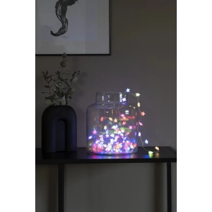 Die Konstsmide LED Sternenlichterkette ist ein beeindruckendes Dekorations-Highlight, das mit 90 bunten Dioden eine faszinierende Lichtatmosphäre schafft. Die hochwertig gearbeiteten Sterne leuchten wie kleine Schmuckstücke in der Dunkelheit und verzaubern den Betrachter mit ihrem strahlenden Glanz. Die filigrane Lichterkette ist vielseitig einsetzbar. Ob auf einem festlich gedeckten Tisch, in einem Glasgefäß oder als Teil eines Gebindes platziert – sie wird alle Blicke auf sich ziehen und für eine zauberhafte Stimmung sorgen. Konstsmide ist ein renommiertes Unternehmen, das seit über 40 Jahren hochwertige Lichtdekorationen für den Innen- und Außenbereich herstellt.