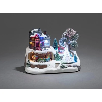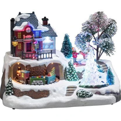 Die LED Szenerie Bahnhof mit Kristallweihnachtsbaum bringt weihnachtliche Stimmung in Ihre 4 Wände. Die Animation wird mit 9 bunten Dioden beleuchtet und von 8 klassischen Weihnachtsliedern begleitet.