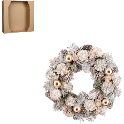 Dieser wunderschöne, winterliche Kranz ist ein echtes Highlight für Ihre Tür oder als Deko auf Ihrem Tisch. Der Kranz von House of Seasons ist hergstellt aus getrockneten Tannenzapfen und anderen natürlichen Materialen.