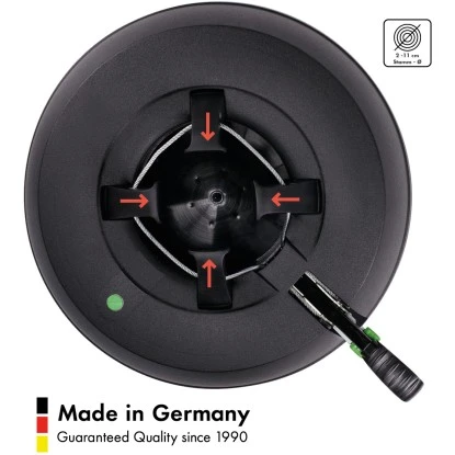 Der neue Krinner Green Line S wird nachhaltig und ressourcenschonend aus 100% recyceltem Kunststoff in Niederbayern hergestellt und trägt damit aktiv zum verantwortungsvollen Umgang mit unserer Umwelt bei. Der Krinner Green Line S ist ausgestattet mit der original Rundum-Einseil-Technik. Die durchgehende Seilführung garantiert dabei den gleichmäßigen Druck der Klauen an den Stamm. Einfach den Baum in den Ständer stellen, das Fußpedal treten, fertig! Ob dick, dünn oder krumm gewachsen, der Baum steht sicher und kerzengerade. Zudem sorgt der patentierte Sicherheitsgurt durch seine schrittweise öffnende Mechanik für extra Sicherheit und verhindert ungewolltes Kippen.