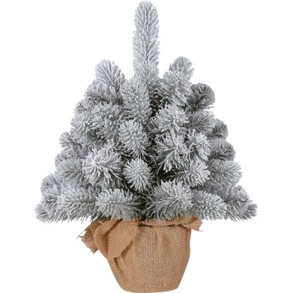 Die winterliche Kunsttanne Ashland sorgt für ein festliches Flair und ein weihnachtliches Ambiente. Sie nadelt nicht und ist jedes Jahr bequem aufstellbar ohne Anstrengung. Sie besteht aus einem modernen Mix aus zwei verschiedenen Kunststoffen, PE und PVC. PE ist recycelbar und enthält keinerlei Weichmacher oder Schwermetalle. PVC steht für eine lange Lebensdauer und bietet Feuerfestigkeit. Die kompakte, kleine Tanne ist 40 cm hoch und besitzt an der breitesten Stelle einen Ø von 35,5 cm. Die dicht bewachsenen Tannenzweige besitzen eine grüne Farbe mit beschneiter Optik in strahlendem Weiß. Dekorativ hervor tritt der mit einem Jute-Beutel umwickelte Baumständer. Innen verbirgt sich ein stabiler Kunststoff-Ständer, der für sicheren Halt sorgt.