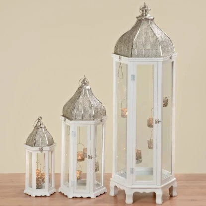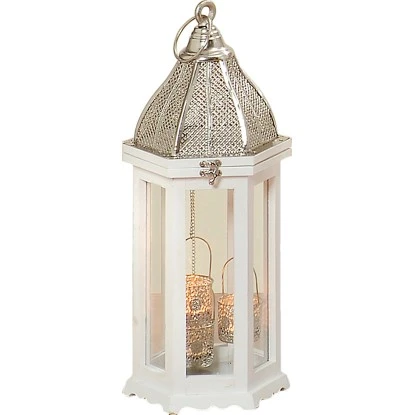 Die orientalisch anmutende Laterne in weiß mit den stimmungsvollen Lichtern im Inneren macht Ihr zuhause zu einem Traum aus 1001 Nacht. Die Fenster bestehen aus Echtglas. Setzen Sie gemütliche Highlights in jeder Ecke und schaffen so eine besondere Atmosphäre. Perfektes Wohnaccessoire oder eine schöne Geschenk-Idee.