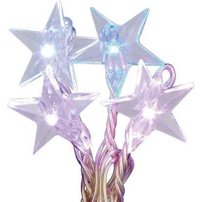 Die Gesamtlänge der Lichterkette beträgt 7 m. Die sternförmigen, farbenfrohen Lichter sind auf einer Länge von 2 m angebracht. Mit der Zuleitung von 5 m können Sie die nächste Steckdose mühelos erreichen. Die langlebigen LED-Leuchtmittel weisen einen geringen Stromverbrauch auf und es findet so gut wie keine Wärmeabgabe statt. Die LEDs leuchten ohne Einschaltverzögerung in voller Helligkeit bei gleichzeitig hoher Lichtausbeute. Sie entwickeln keine UV- oder IR-Strahlen und sind zudem umweltfreundlich zu entsorgen. Die Sterne erstrahlen in vier trendigen Farben: Pink, Blau, Lila und Kaltweiß.