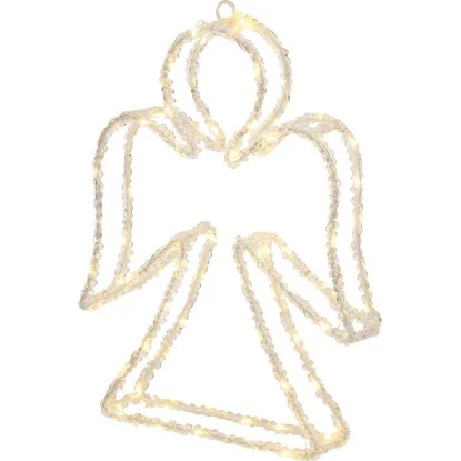 Mit diesem LED-Engel lassen sich Balkon, Terrasse und Innenräume weihnachtlich dekorieren. Sein Design zeichnet sich durch die dreidimensionale Optik in weißer Farbe aus. Bei einer Höhe von 32 cm hat die Weihnachtsfigur eine Breite von 24 cm und Tiefe von 5 cm. Hergestellt ist sie aus langlebigem Acryl. Der Betrieb erfolgt über das silberne, 5 m lange Stromkabel. Der Engel ist zum Aufhängen gedacht und besitzt hierfür eine praktische Öse. Anbringen lässt er sich im Innen- und Außenbereich. Für die Beleuchtung ist die Figur mit insgesamt 80 energiesparenden LEDs versehen. Mit ihrer warmweißen Lichtfarbe schaffen diese eine stimmungsvolle und gemütliche Atmosphäre.