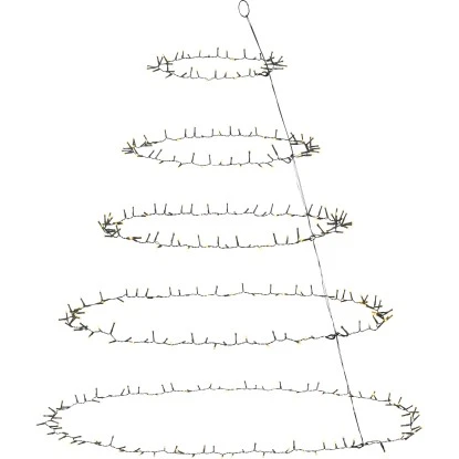 Mit der eleganten LED-Lichterkette verschönern Sie Ihren Tannenbaum mit einer angenehmen Beleuchtung. Sie ist gleichermaßen für den Innen- und Außenbereich geeignet. Aufgeteilt ist die Kette in sechs unterschiedlich lange LED-Ringe, sodass Sie Ihren Baum optimal schmücken können. Dazu verfügen die einzelnen Ebenen über einen Abstand von je 30 cm. Dank des dunkelgrünen Kabels passt die Lichterkette optimal zum Tannengrün. Die Gesamtlänge beträgt 620 cm und der max. Ø der Leuchtkränze beträgt 327 cm.