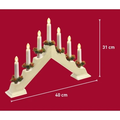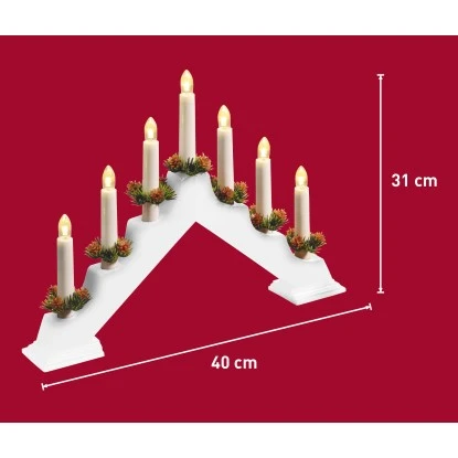 Für die perfekte Weihnachtsstimmung in Ihrem Zuhause. Der aus Holz gefertigte LED-Schwippbogen in Pyramidenform bietet sich als besondere, festliche und stimmungsvolle Fensterdekoration an. Die 7 warmweißen LEDss auf weißen Kerzenschaften verbreiten ein weihnachtliches Ambiente in Ihrem Wohnraum. Das weiße Zuleitungskabel ist 1,5 m lang und verfügt über einen Ein-/Ausschalter. Der Schwippbogen ist zur Verwendung im Innenbereich geeignet. Diesen wunderschönen Holz-Schwippbogen gibt es in den Farben Dunkelbraun, Natur oder Weiß.