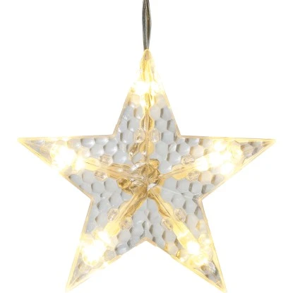 Speziell zur Weihnachtszeit bietet Ihnen der dekorative LED-Vorhang eine gemütliche Beleuchtung für das Fenster oder den Balkon. Ihre 120 LEDs verteilen sich auf runde Lampen sowie herabhängende Sterne und Monde, wodurch eine abwechslungsreiche Kombination entsteht. Dank des transparenten Kabels stehen die Leuchtfiguren im Mittelpunkt. Die Lichterkette kann gleichermaßen in Außenbereichen wie in Innenräumen zum Einsatz kommen. Sie stellt Ihnen eine Gesamtlänge von 7 m zur Verfügung. Der beleuchtete Bereich umfasst dabei 2 m, während 5 m auf die Zuleitung entfallen. Der Vorhang besitzt eine maximale Höhe von 82 cm.