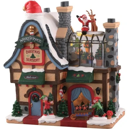Die Lemax Weihnachtsdekoration Nordpol Kindergarten zeigt einen Ort an dem sich um die kleinen Rentiere gekümmert wird.