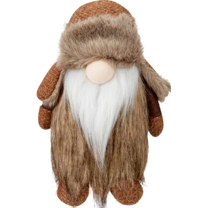 Mit diesem Stoff-Wichtel können Sie Ihr Zuhause in der Winter- und Weihnachtszeit festlich dekorieren. Je nach Geschmack lässt er sich auf dem Sofa, der Fensterbank oder im Regal platzieren. Gestaltet ist der Wichtel mit Mütze, Mantel sowie dem typischen langen Bart. Die Farben sind Brauntöne und Grau. Die Maße betragen 25 cm x 11 cm x 15 cm (H x B x T).