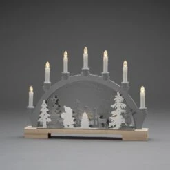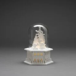 Konstsmide LED Holzsilhouette Rentiere Und Bäume Unter Glaskuppel