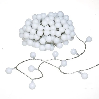Die XXL Partylichterkette enthält insgesamt 180 weiße Leuchtkugeln. Die Lichterkette ist für den Innen- und Außenbereich geeignet und verfügt über eine 6 Stunden-Timerfunktion.